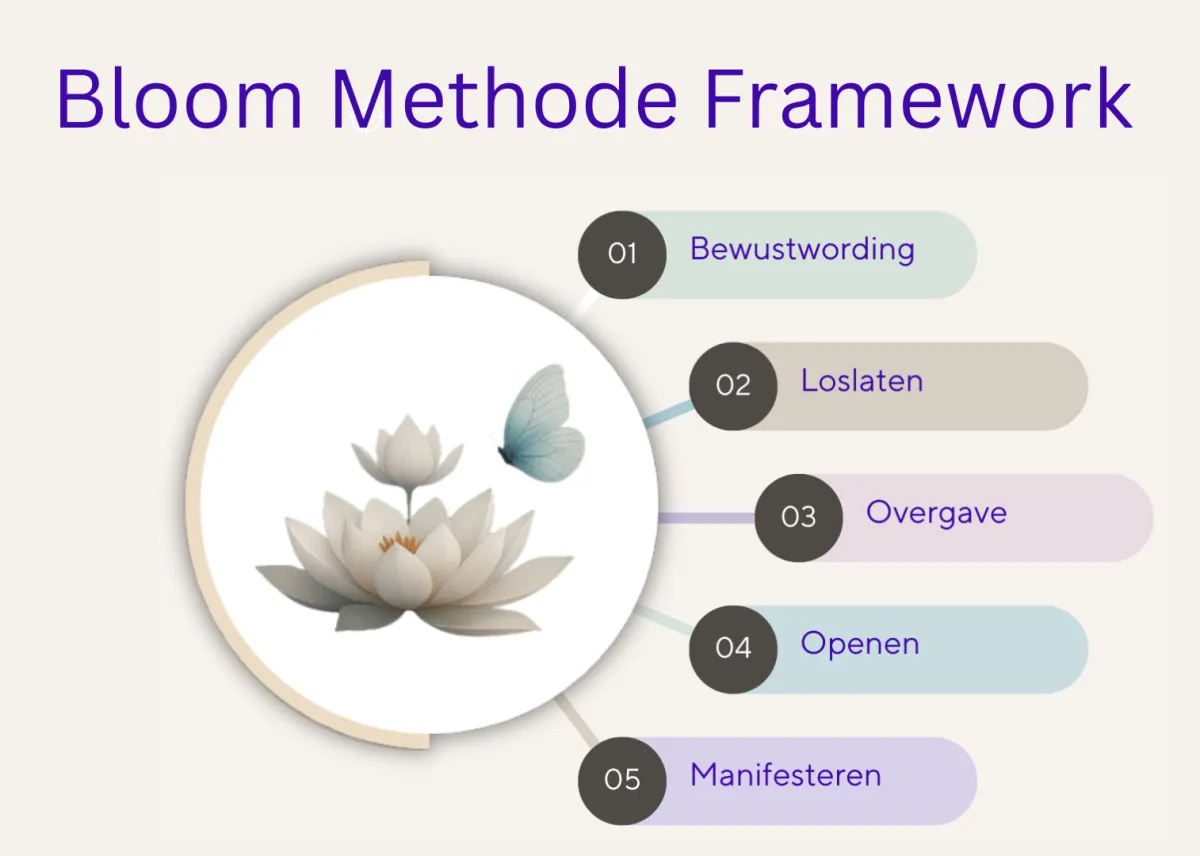 De kracht van de Bloom Methode zit in de zachte, veilige benadering die ruimte geeft aan jouw tempo, jouw gevoeligheid en jouw unieke proces. Het is een methode die je terugbrengt naar je essentie, waardoor je weer rust, zelfvertrouwen en innerlijke vrijheid gaat ervaren.